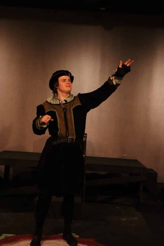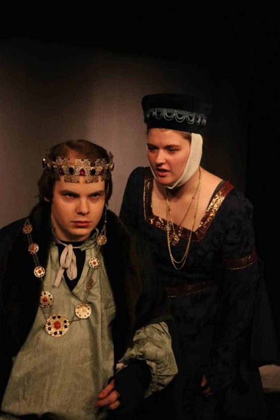 This production is fast-paced and dynamic, thought-provoking and engaging. Richard of Gloucester, later King Richard, is one of Shakespeare’s most intriguing characters. From the very beginning of the play, he shares with the audience his plans, and at times, we can’t help but find him charming and amusing. We also balk at what we see him willing to do to gain the throne.